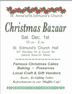 Services 21 December in St. Edmund: Eucharist 1 PM and Service of Comfort & Light 4 PM. Christmas Eve Eucharist in St. Anne 24 December 10 PM.